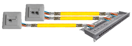 Btw: Die Impedanz beträgt 100 Ohm, der ohmsche Widerstand liegt unter 95 Ohm / km, bei höheren Klassen bis runter zu fast 50 Ohm / km. Anmerkung: Beim Befestigen der Kabel mittels Kabelbindern und Zugentlastungen sollte man diese nicht endlos „anknallen“. Auch die vorgegebenen minimalen Biegeradien sind ein zu halten. Bei Quetschungen der Aderisolation können sich die elektrischen Eigenschaften der Adernpäärchen so verändern, dass es zu Störungen bis hin zum komplettem Ausfall der Verbindung kommt, obwohl die Adern alle noch Durchgang haben. | ||||||||||||||||||||||||||||||||||||